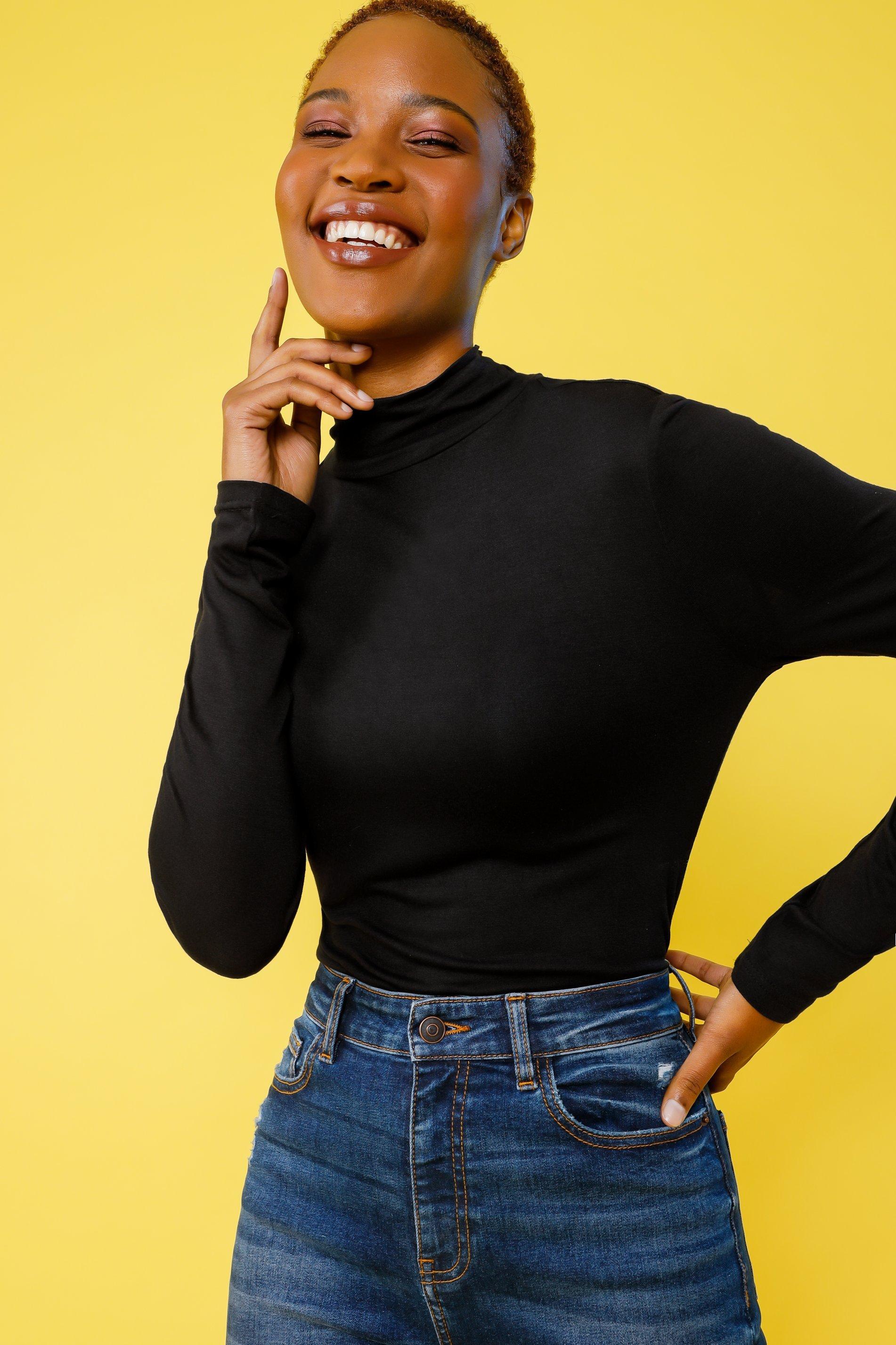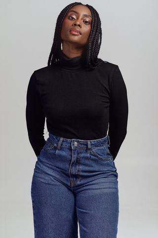 Product Name: Black polo neck long sleeve top hot sale