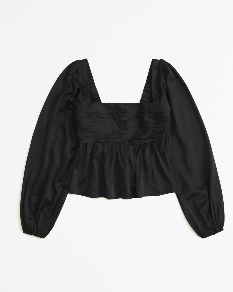 Product Name: Black satin long sleeve top hot sale