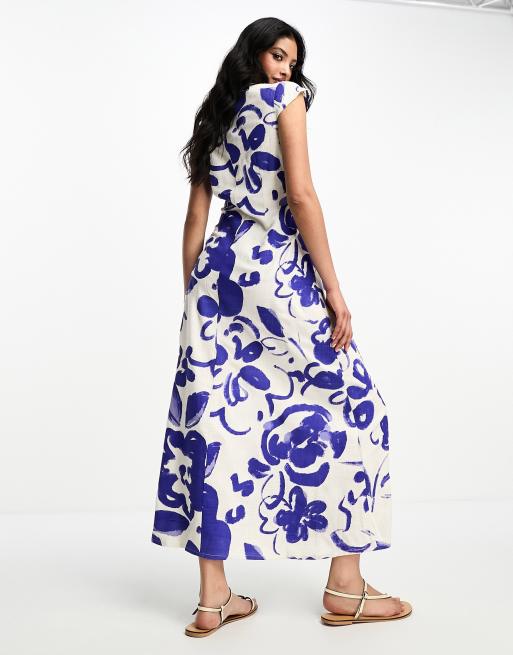 Blue linen hot sale maxi dress