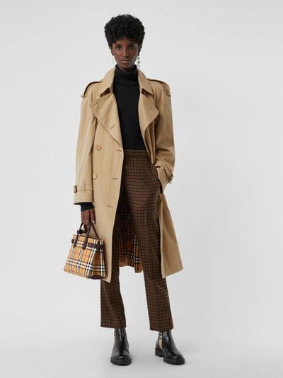 Burberry small banner in vintage check handbag deep hot sale claret