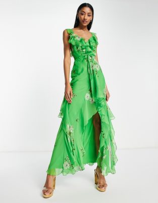 Product Name: Asos design dipped hem maxi dress with 3d embellishment and ruffle sleeve hot sale