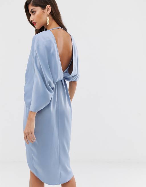 - asos design satin kimono midi dress with knot front and asymmetric sleeve
